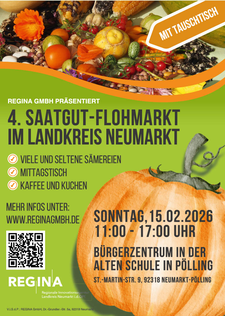 Es ist wieder soweit! Am Sonntag, den 15. Februar 2026 geht der Saatgut-Flohmarkt für den Landkreis Neumarkt in die vierte Runde, wieder im Bürgerzentrum in der Alten Schule in Pölling (St.-Martin-Straße 9, 92318 Neumarkt-Pölling).
