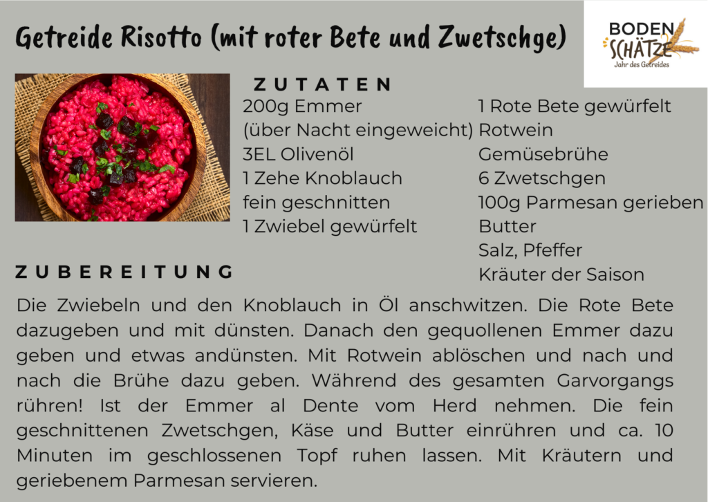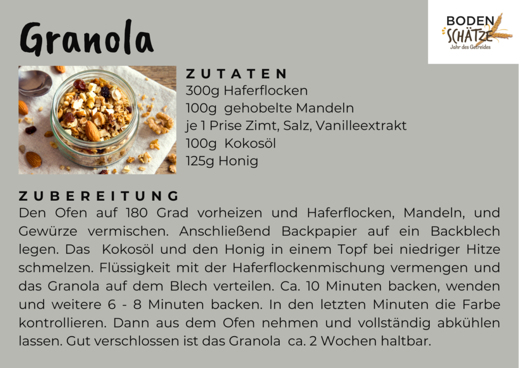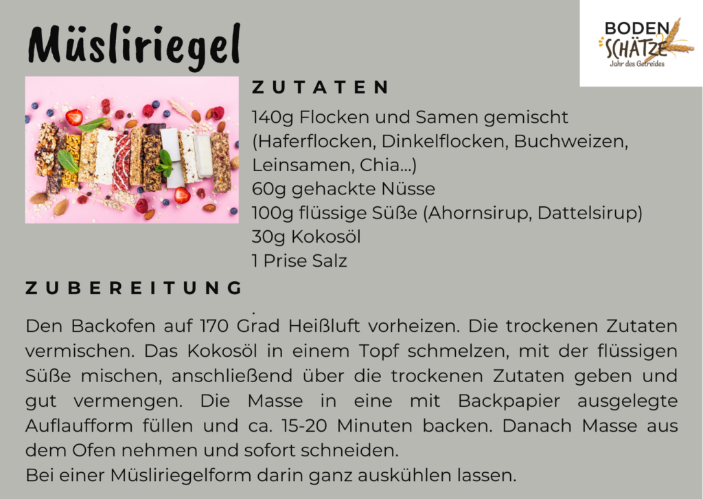 Kochen mit Getreide? Geht denn das? Um das herauszufinden, organisierte die REGINA GmbH im Rahmen des „Jahres des Getreides 2024“ im Bereich Bodenschätze jeweils einen Kochkurs in der Lehrküche des Amtes für Ernährung, Landwirtschaft und Forsten Amberg- Neumarkt i.d.OPf. in Neumarkt und in Evas Kochwerkstatt in Parsberg. Hungrig und auch neugierig fanden sich in beiden Kursen zahlreiche Teilnehmende ein. Beide Male übernahm Eva Zitzelsberger, die ihre eigene Kochwerkstatt in Parsberg betreibt, federführend den Kochlöffel, nachdem Corinna Frankerl von der REGINA GmbH und Sabine Pfeiffer vom AELF die Gäste begrüßten. Gekocht wurde mit Grünkernschrot, Hafer, Weizen, Bulgur, Dinkel und Emmer. Heraus kam ein schnell gebackenes saftiges Dinkelbrot, knuspriges Granola, das wunderbar ins gesunde Frühstücksmüsli passt und ein Bircher Müsli, ganz nach eigenen Vorlieben zubereitet. Neue Geschmackserlebnisse lieferten ein Getreiderisotto mit heimischem Emmer, Roter Bete und Zwetschge sowie saftige Grünkernbratlinge, die eigentlich keine Beilage nötig haben. Für den Hunger zwischendurch wurden feine Müsliriegel gebacken und ein sommerlich erfrischender Bulgur-Salat, verfeinert mit saisonalem Gemüse, das gerade im Garten geerntet werden kann, wie Karotten und Zwiebeln. Die Teilnehmerinnen und Teilnehmer wurden sogleich zum Schneiden, Raspeln und Anbraten eingespannt und brachten natürlich auch eigene Erfahrung und Geschmäcker mit ein. Zum Schluss wurden in gemütlicher Runde die zubereiteten Köstlichkeiten gekostet und auch restlos aufgegessen. Daher kann man getrost sagen, dass Kochen mit Getreide absolut kein Problem ist. Wer sich ebenfalls in der Küche mit Getreide versuchen möchte, kann gerne die Rezepte ausprobieren. Es gibt sie auch unter den Downloads.