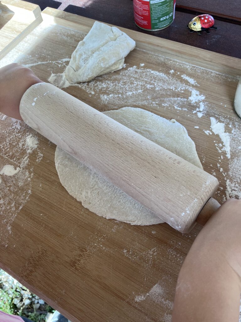 Das Holz für den Ofen zum Einheizen herbei tragen, Mehl für den Pizzateig mahlen, die Zutaten für den Belag vorbereiten. Das alles durften die Kinder am Freitag, den 20.9.2024 auf dem Erlebnishof Riedhof bei Stilla Reindl erledigen. Und die Kinder hatten viel Freude dabei und waren eifrig bei der Sache, vor allem wenn es um das kneten und belegen der Pizza ging. Ebenso stellten sie viele Fragen, rund um das Getreide und das Mehl, die Stilla alle gerne beantwortet hat. Hinterher durften wir zusammen den Tag bei leckerer selbstgemachter Pizza auf Stillas Hof ausklingen lasse.